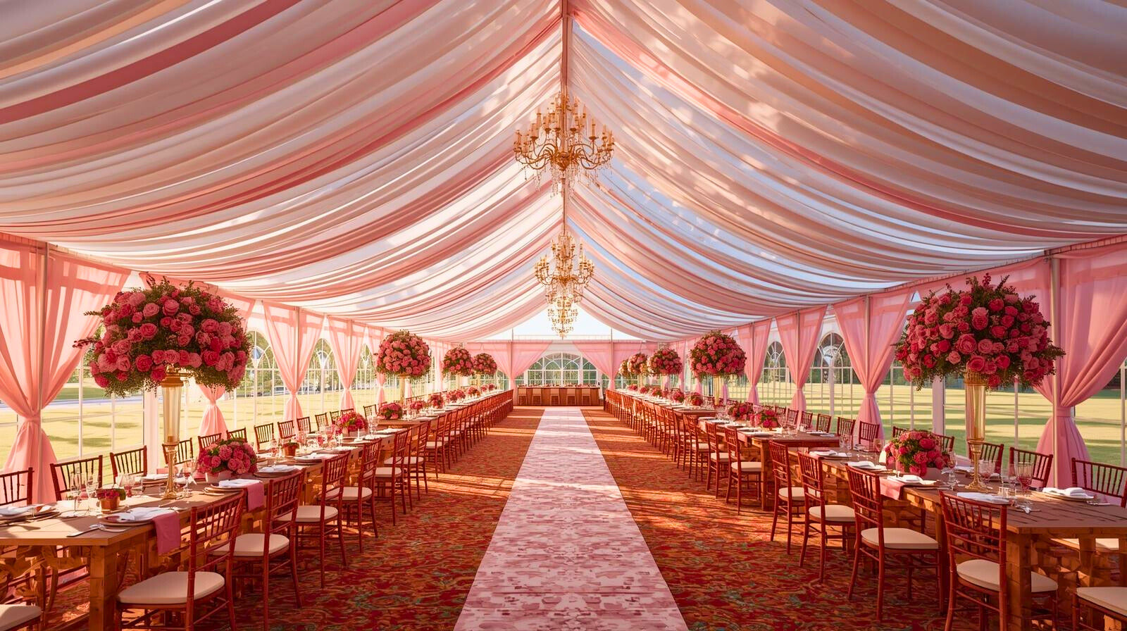 Nos scénographies marient architecture éphémère, art floral, lumière, mobilier d’exception et savoir-faire artisanal.